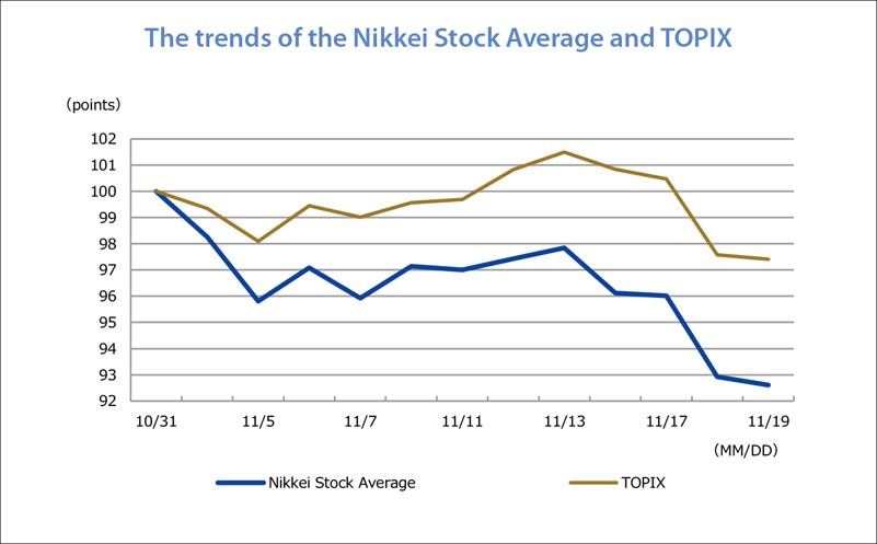 Firstly, regarding stocks, the Nikkei average fell by 3,873.64 yen (7.4%) from the closing price record set on October 31 to November 19. Particularly notable in leading this decline were the mega-cap of SoftBank Group, Advantest, and Tokyo Electron. However, since this low point, the market has rallied effectively and regained almost all of this lost ground. As such, we interpret this downwards move as a short-term market response to the increased policy dynamism of the new government, which once market participants had had a little longer to digest was swiftly reversed.