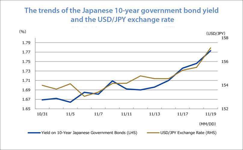 Lastly, regarding the yen, its depreciation against major currencies has now become extremely pronounced, with the USD/JPY exchange rate reaching as high as 157.18 yen per dollar on November 19. In addition to concerns that Prime Minister Takaichi’s aggressive fiscal policy could lead to fiscal deterioration, the yen selling appears to be driven by anxiety of the sustainability of Japan’s fiscal path.